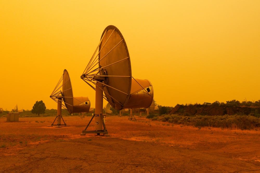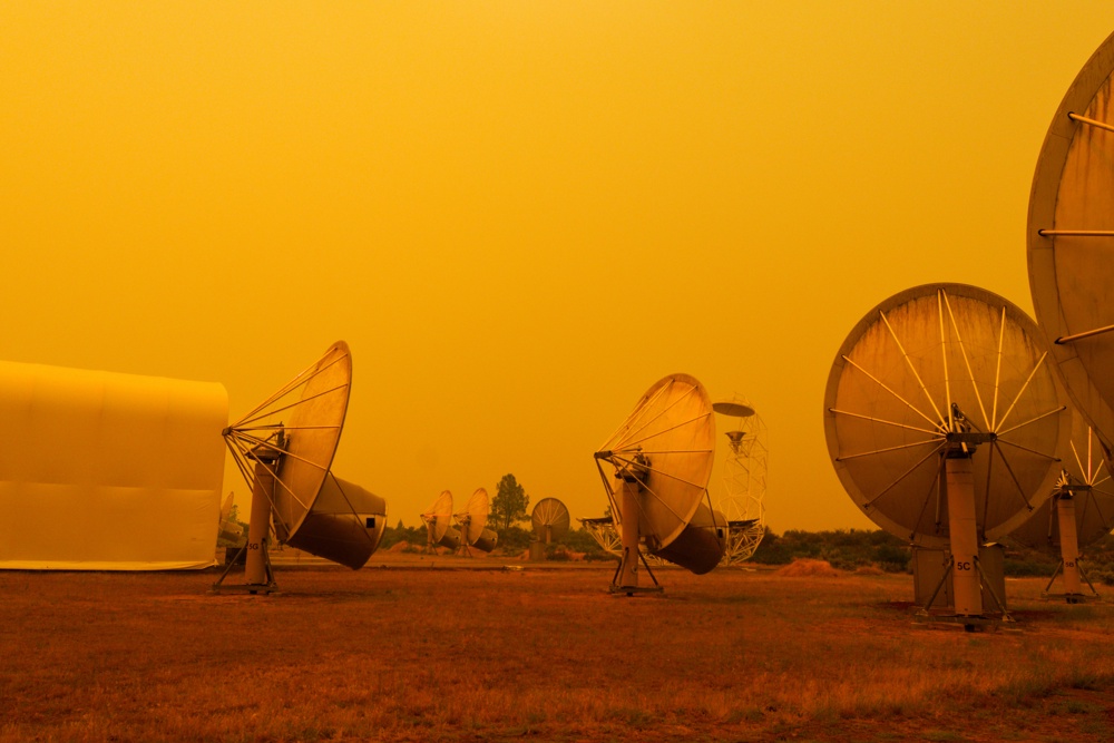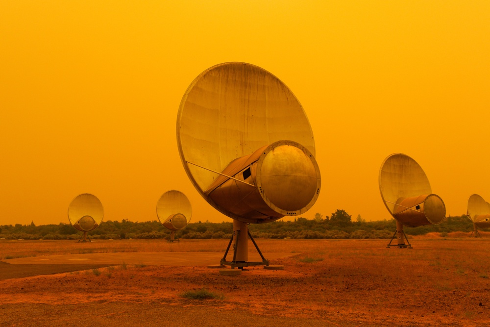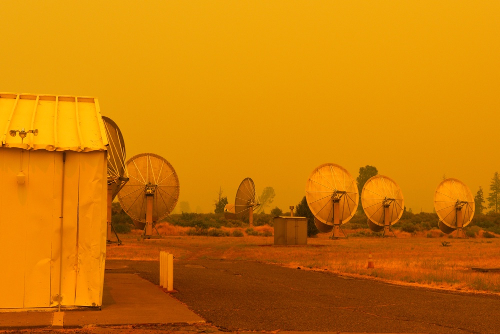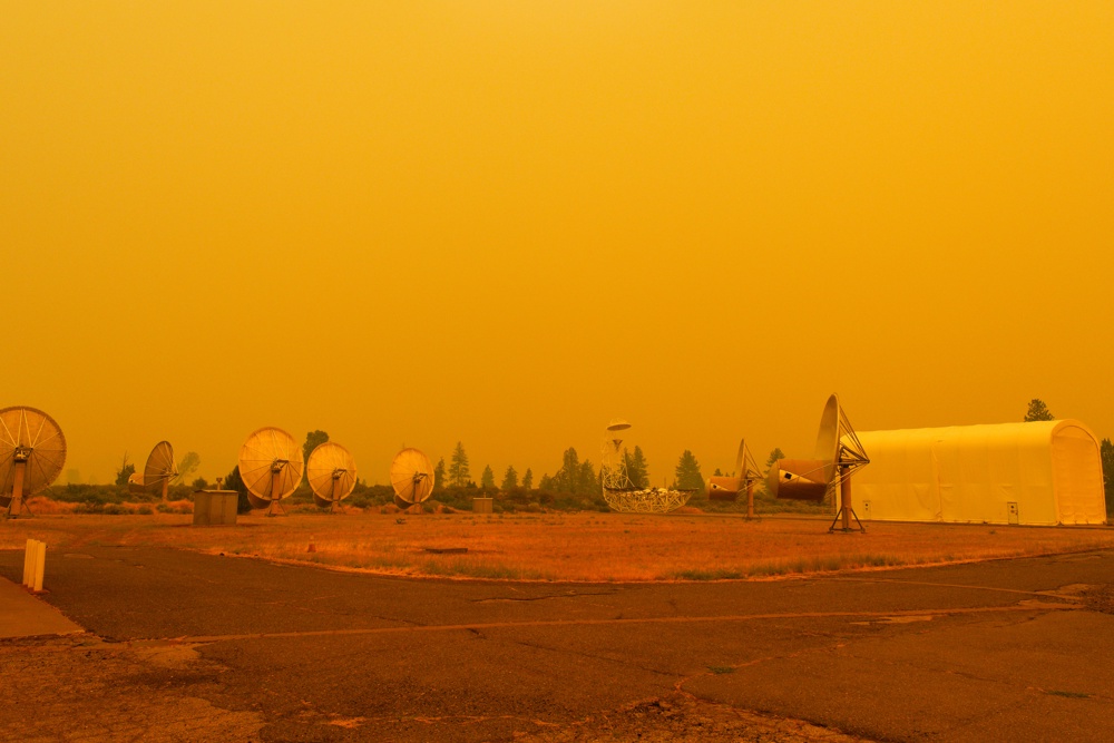 A wildfire started in the hills northeast of Chico, California, USA. These photos, taken on July 25, 2024, show the smoke at the Allen Telescope Array in Hat Creek, California, USA.